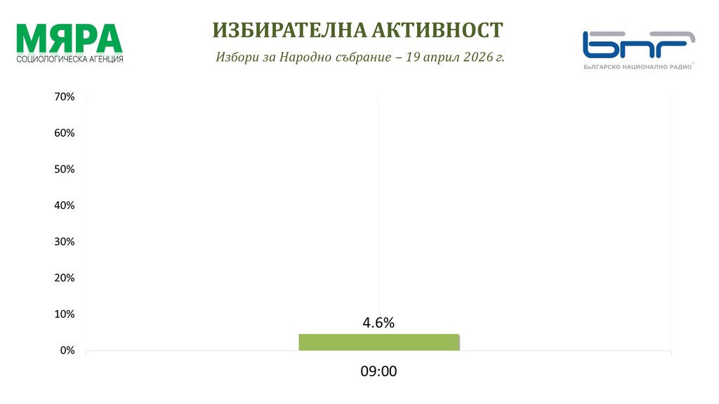 По состоянию на 9:00 ч. средняя явка избирателей по стране составляет 4,6 %, согласно данным социологического агентства «Мяра», партнера БНР в освещении выборов.