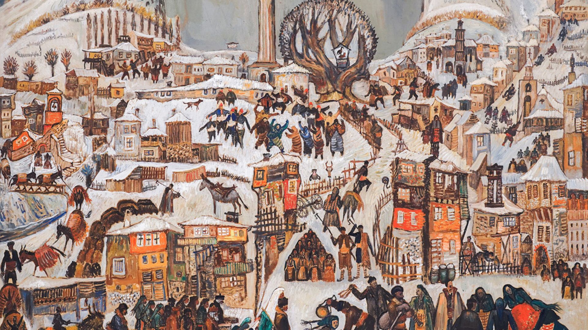 «Две свадьбы» была написана в Париже в 1970 г. и изображают христианскую и мусульманскую свадьбы на фоне зимнего пейзажа с минаретом, церковной колокольней и вековым деревом. Картина относится ко второму периоду в творчестве известного художника, начавшемуся после 1951 г., когда Бояджиев перенес тяжелый инсульт, парализовавший его правую руку. Спустя несколько лет художник начал писать левой рукой, что привело к резкой смене его стиля.