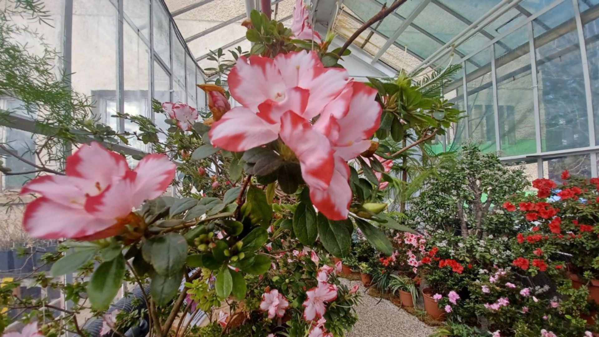 В пяти тропических оранжереях сада кипит напряженная работа, ведь зимой цветут азалии и начинается цветение всех видов орхидей. Эти растения, пришедшие из лесов Японии и Китая, требуют высокой влажности, чтобы их цветы не засыхали и чувствовали себя так же, как в природе. Здесь насчитывается более ста различных азалий - красных, белых, лиловых, розовых и пестрых, но самыми важные среди них – два гордых растения почтенного возраста. Они были частью оранжерейной коллекции царя Фердинанда, который собирал растения из ближних и дальних стран, чтобы украшать царский дворец. До наших дней сохранилось более 80 видов растений. Некоторые из них были спасены во время войны и бомбардировок Софии, и при таких обстоятельствах попали в коллекцию Ботанического сада.