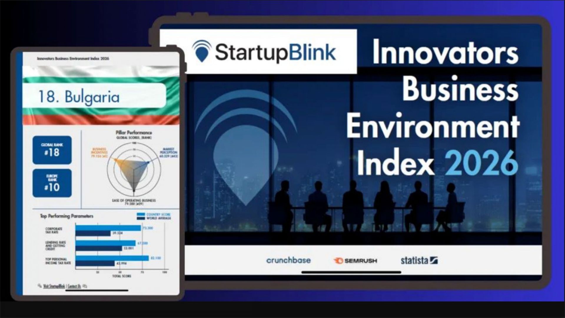 Болгария занимает 18-е место в мире и 10-е в Европе среди 125 стран в годовом издании рейтинга бизнес среды Innovators Business Environment Index (IBEI) 2026, изготовленном StartupBlink, который был опубликован в конце января, сообщает БТА.