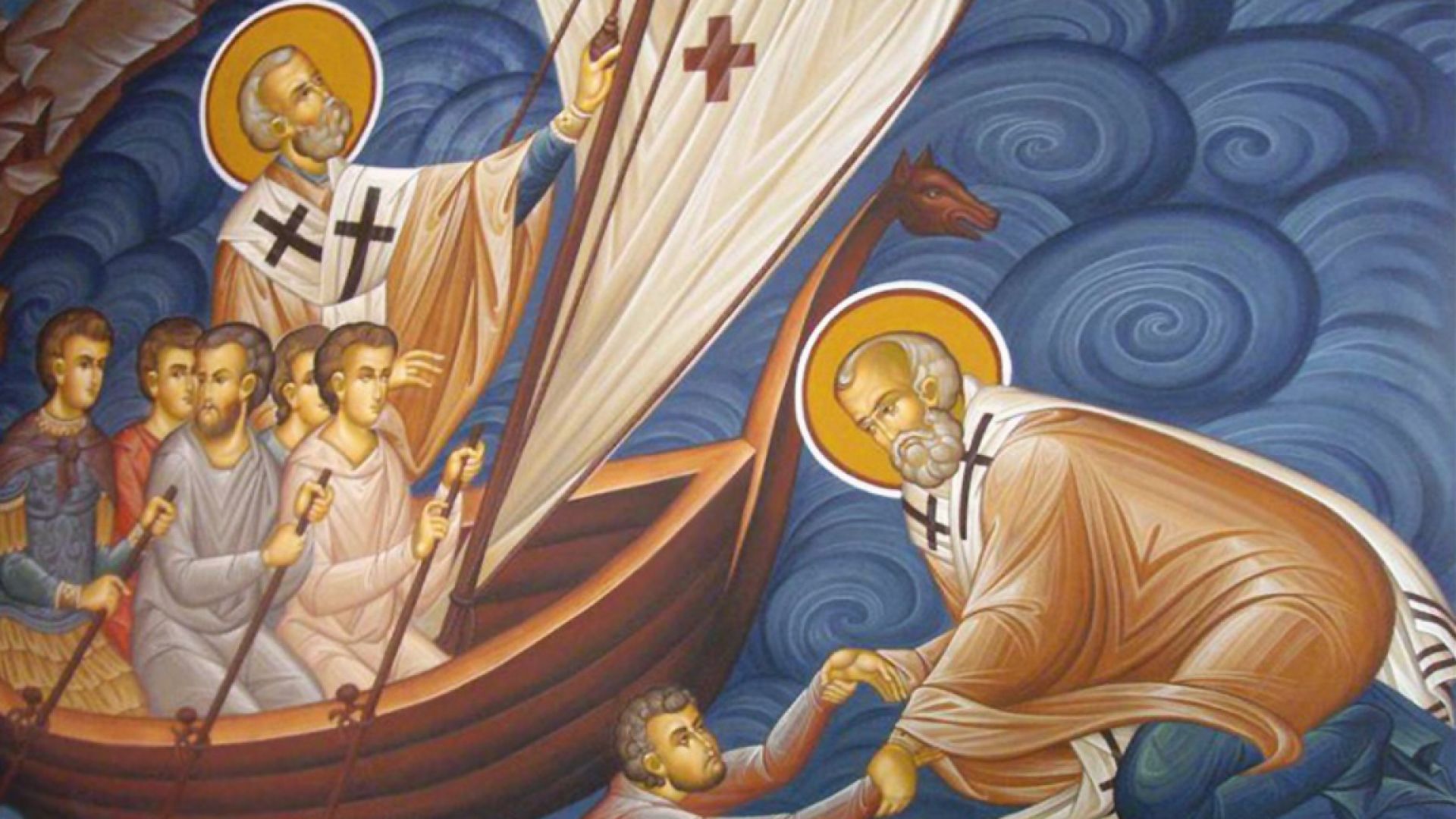 Согласно народно-христианской мифологии, когда Господь раздавал землю и небо, святому Николаю достались моря, реки, озера, а также все обитатели подводного царства. Его верный слуга – карп, поэтому он неизменно присутствует не только в сказках, но и на праздничной трапезе. Есть много легенд, в которых святой чудотворным образом спасает людей, тонущих посреди морей и океанов. Димитр Маринов записал и несколько историй, в которых рассказчики утверждали, что это реальные события. В одной из таких историй рассказывается о мужчине и женщине, которые отправились на Святую гору. Господь решил дать им знак и сделал так, что Черное море замерзло. Тогда мужчина и женщина стали молить Бога и пообещали сделать церковь из ладана и бочку из воска. Бог разморозил море, и они поплыли. Но мужчина решил не выполнять свой обет. Тогда лодка разбилась, и он погиб, а пришедший на помощь святой Николай спас только женщину.