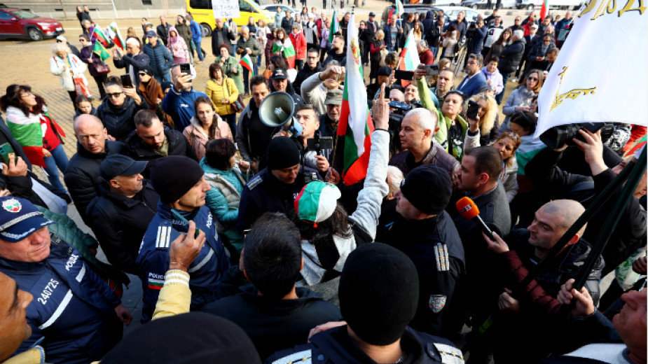 Около сотни сторонников партии "Возрождение" собрались на акцию протеста против ввода евро перед зданием Болгарского народного банка (БНБ) в Софии. Акция проводится в связи с запланированным официальным визитом председателя Европейского центрального банка Кристин Лагард в Софию 4 ноября.