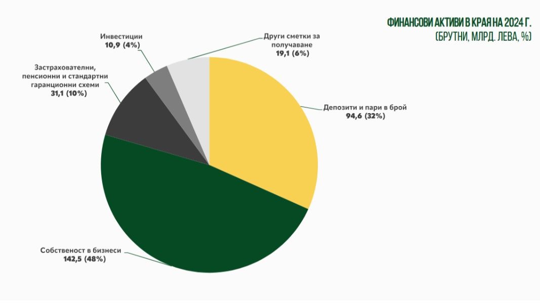 Например, только 1,1 % болгар инвестируют в ценные бумаги, а 84 % предпочитают хранить деньги на банковских депозитах, несмотря на низкие процентные ставки и инфляцию, которая "съедает" их сбережения. И это при условии, что только 22 % откладывают деньги. Из 300 миллиардов, представляющих собой финансовые активы, почти половина – 145 миллиардов – находится в форме собственного бизнеса, что с другой точки зрения является хорошей новостью, поскольку развивает экономику, отмечает Баклаян.