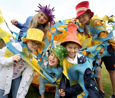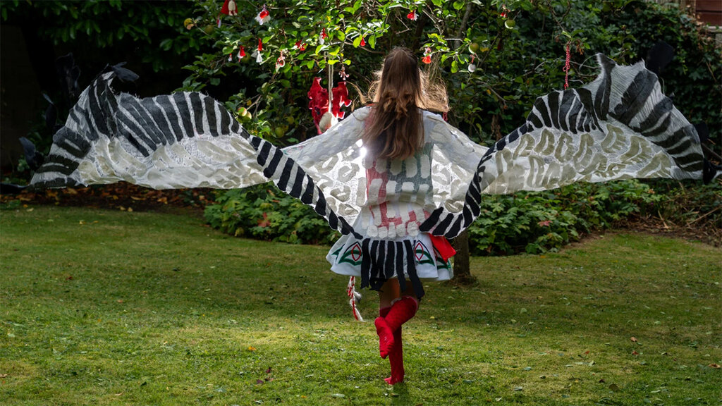 Крылья сделаны из шерсти и шелка, они очень легкие. Все экспонаты помещаются в одной сумке, а в музее в развернутом виде заполняют весь зал. Вот это, например, крылья птицы Феникс - с них началась первая история, которую я рассказала. А это крылья диких лебедей - в ирландской версии это три брата и одна сестра, которая вяжет волшебные свитеры из крапивной пряжи.